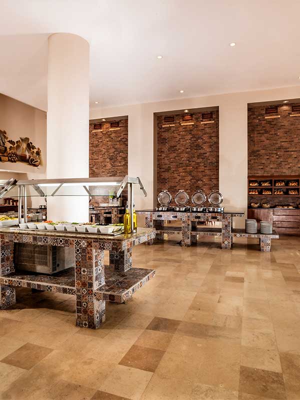 Profitez de la brise marine et d’une vue spectaculaire au buffet du complexe, avec des espaces intérieurs et extérieurs, un coin pour enfants et des plats frais et sains pour tous les goûts.