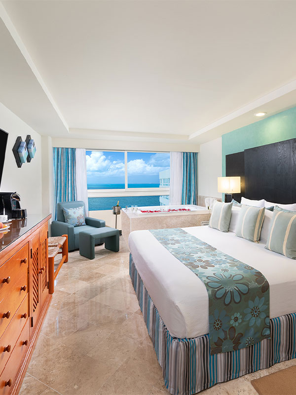 Cette suite offre une baignoire d’hydromassage ou une piscine privée dans la chambre ou sur votre terrasse, une machine à espresso, un service de préparation de la chambre avant le coucher, un menu d'oreillers et plus encore.